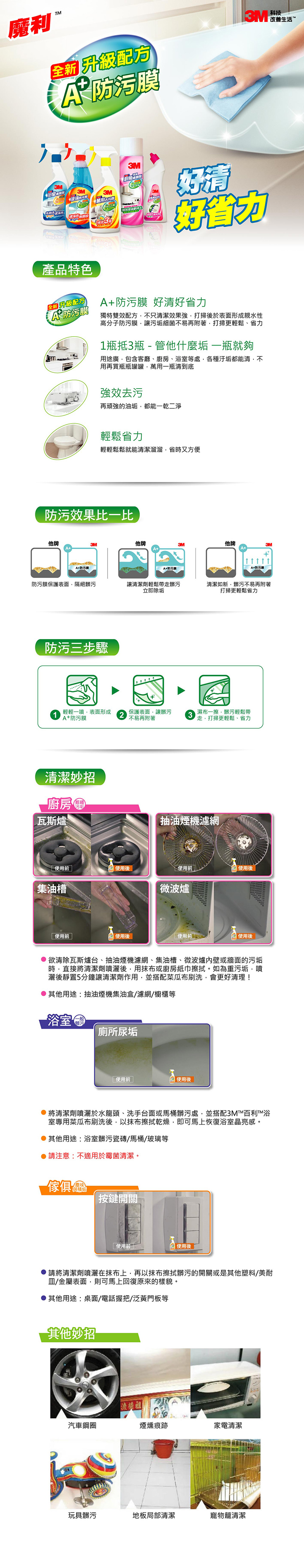 全新配方,A+防污膜,好清好省力。一瓶抵3瓶,管他什麼垢,一瓶就夠。