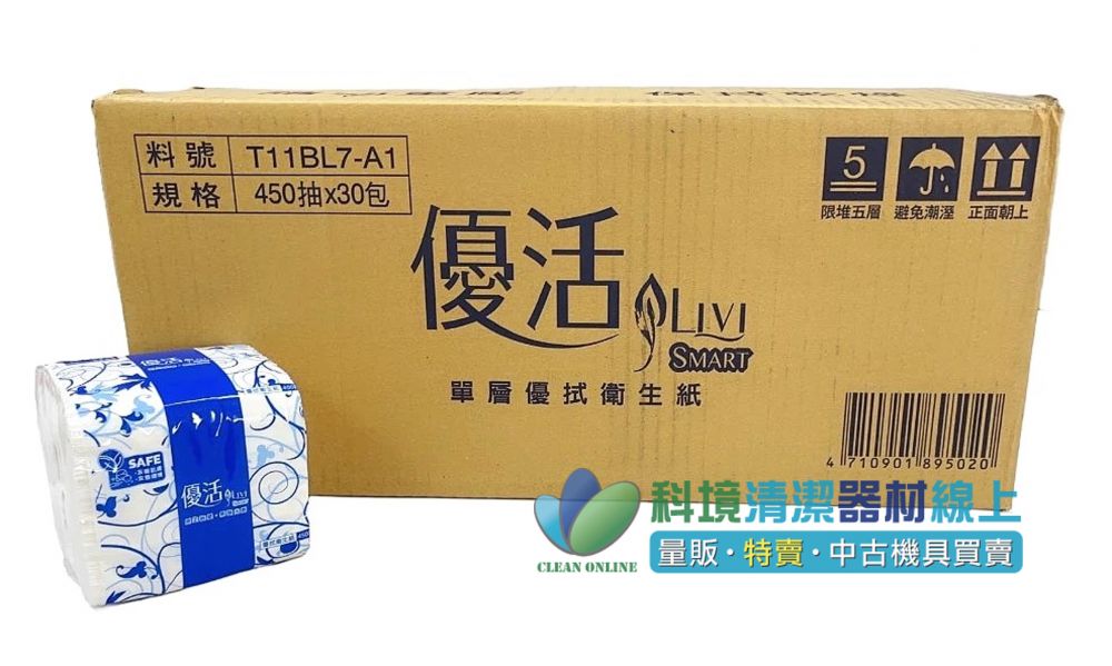 規格: 優活單抽單層衛生紙-450抽/30包/箱